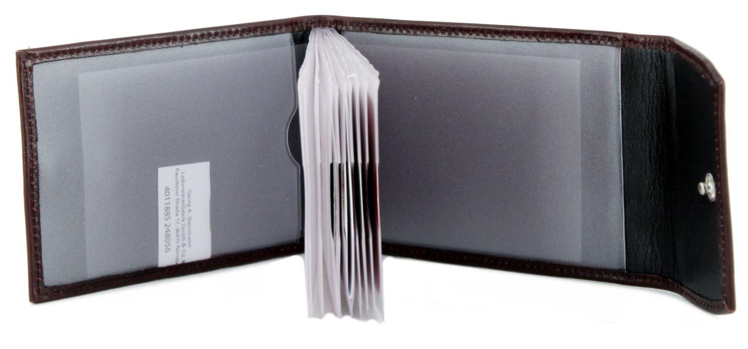 Das Etui ist per Überschlag mit Druckknopf verschließbar, beinhaltet zehn Kartenhüllen, welche als Gesamtes auch praktisch aus dem Lederetui herausgenommen werden können. Dabei können auch im Lederumschlag noch zwei Karten deponiert werden.