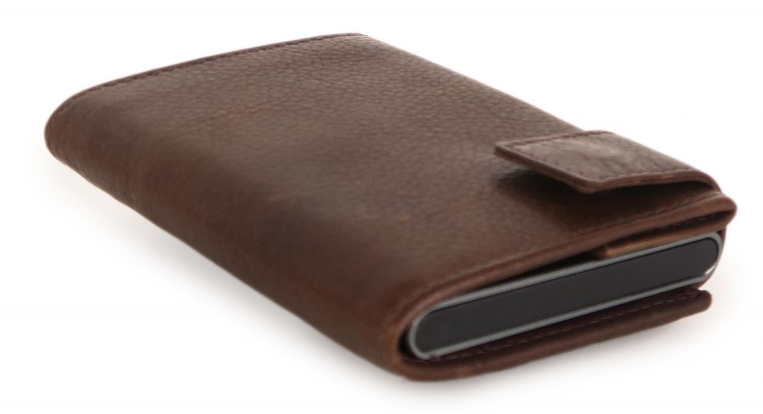 Diese Kreditkartenbörse mit Münzfach der Marke SecWal ist aus hochwertigem genarbtem Rindleder gefertigt. Die Metallhülle für Karten ist aus Aluminium.