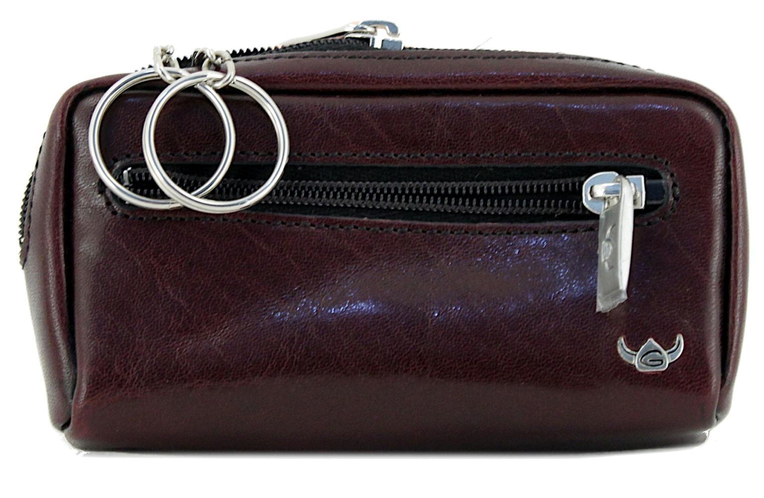Dieses Schlüsseltasche aus der Serie Colorado Classic der Marke Golden Head ist aus qualitativ hochwertigem Voll-Rindleder im ansprechenden Farbton Bordeaux/Burgundy (Rotbraun) gefertigt. Das handgefärbte Ledertäschchen mit glattem Finish und silberfarbenen Details und Beschlägen im zeitlosen und edlem Design, sorgt für Ordnung beim Schlüsselchaos. Zu erwähnen ist die extra breite Ausführung mit zwei Schlüsselringen im Inneren und einem kleinen Reißverschlussfach außen rückseitig.