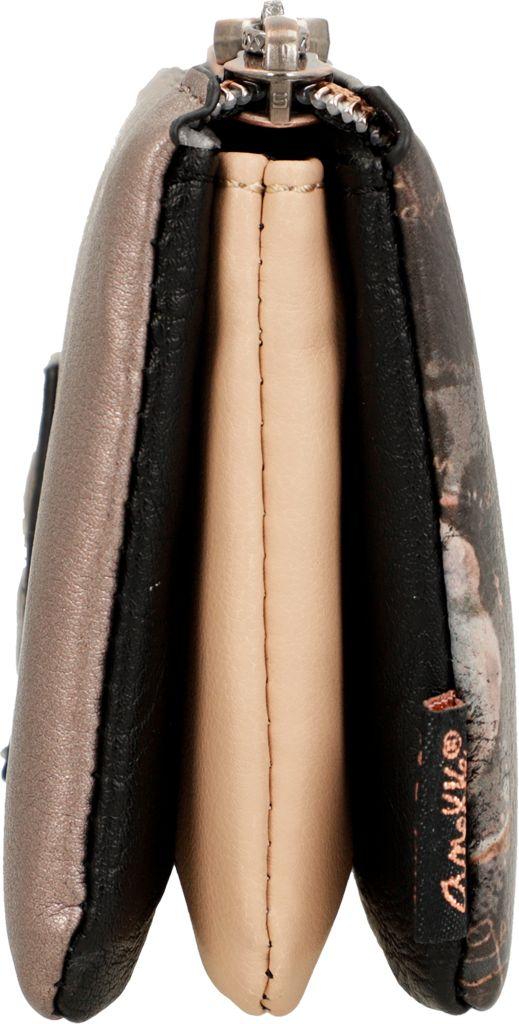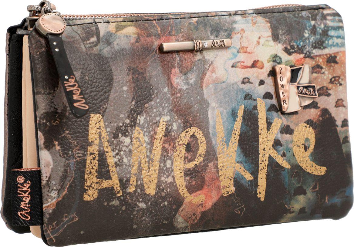 Das praktische dreigeteilte Münzetui aus der Serie Contemporary von Anekke entführt uns diesmal nach Japan. Gefertigt aus glattem Kunstleder zeigt die Vorderseite der Geldtasche einen abstrakten Kunstdruck mit auffälligem Markenschriftzug.