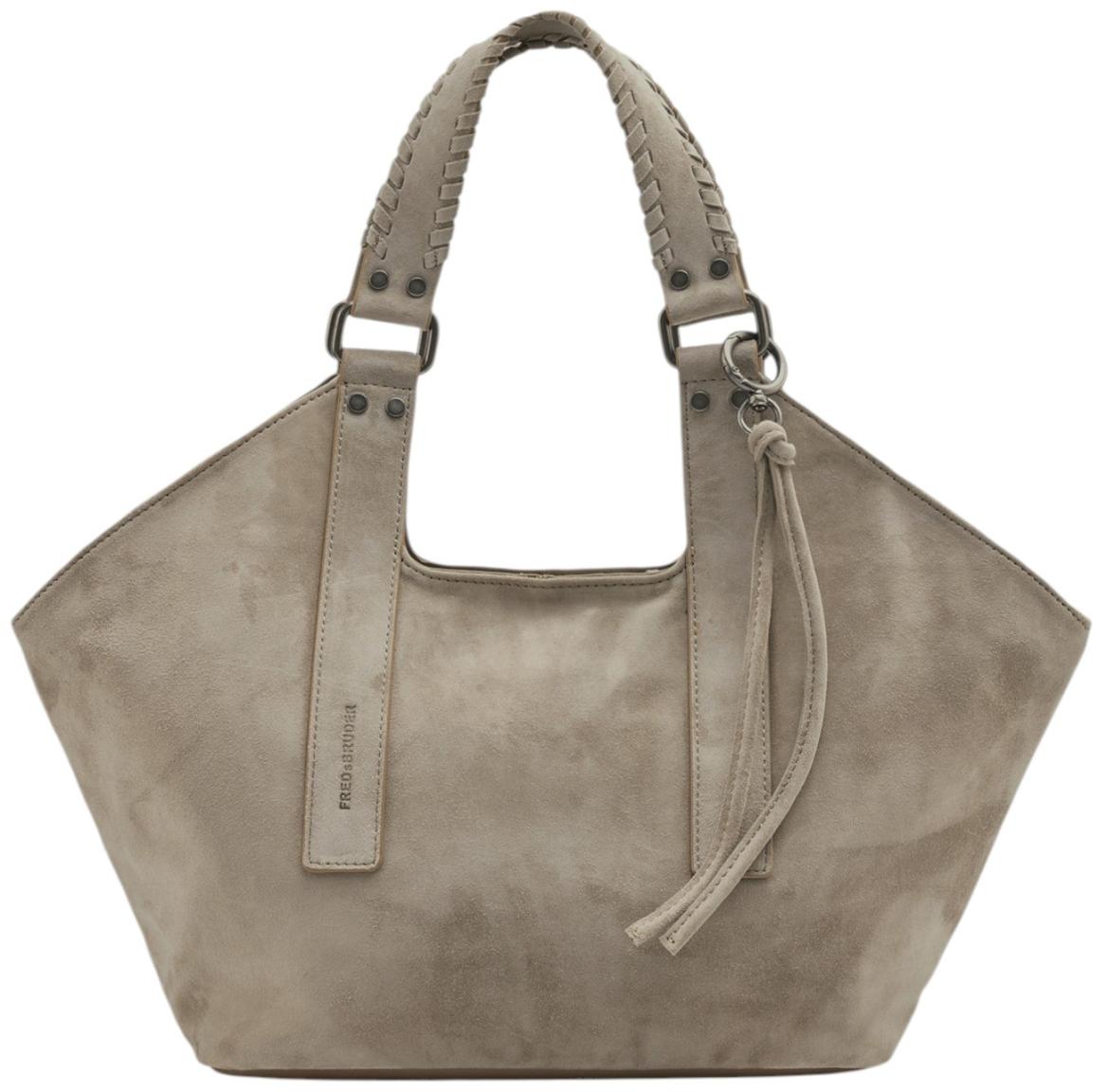 Schlichter FREDsBRUDER Whipstitch Soul Shopper aus geschmeidigem Veloursleder in Taupe. Cleanes Design mit geprägtem Logo an der Vorderseite - ideal zu legeren Alltagslooks! Perfekter Begleiter zu ausgedehnten Shoppingtouren oder zum Städtetrip mit den Mädels.