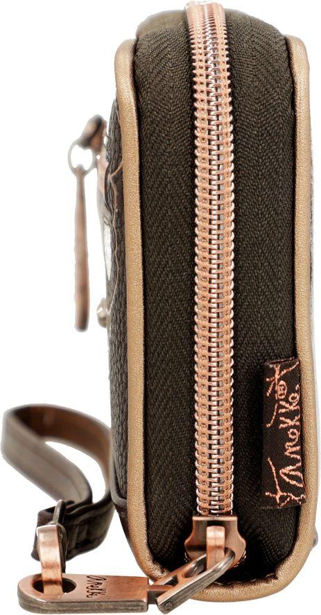 Geschlossen wird das Portemonnaie mittels Reißverschluss. Innen ist die Geldtasche mit einem abgestimmten Textilfutter ausgestattet.