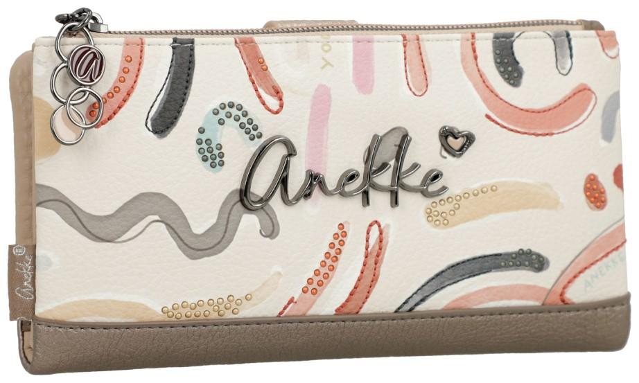 Diese Damenbörse aus der Anekke Muse Kollektion transportiert genau diese Energie. Intensive Farben, kraftvolle Stickereien mit Geschichte und ein abstakter Print verschmelzen zu einem Design voller Bewegung und Ausdruck. Das gut positionierte Anekke Logo setzt einen klaren Akzent und unterstreicht die starke Identität dieses Acessoires.