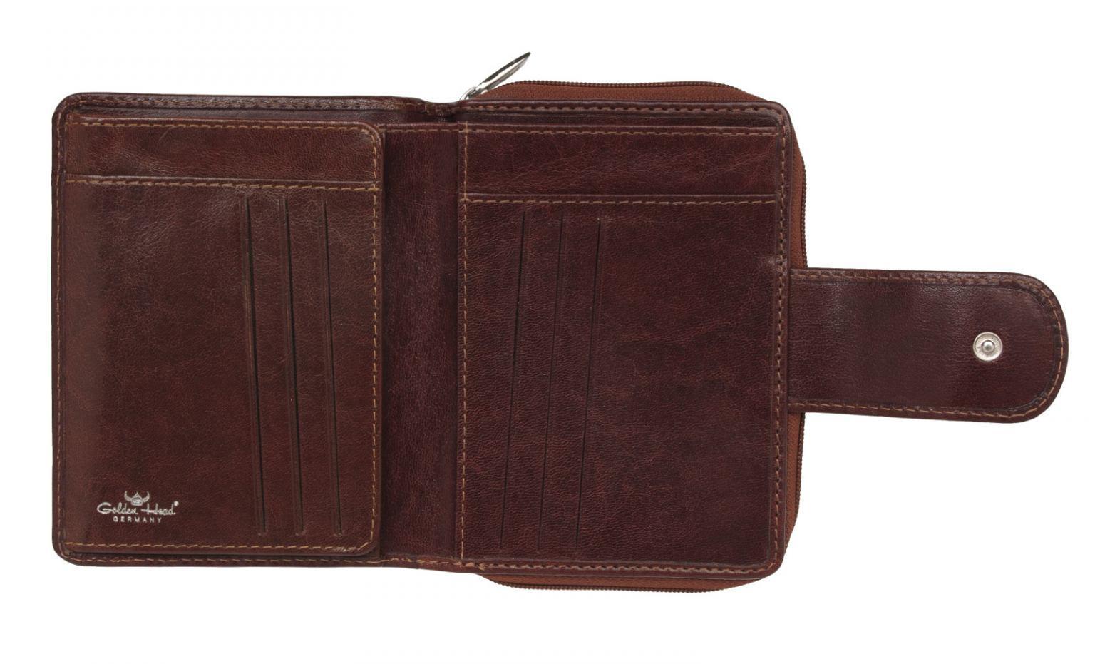 Die Damenbörse der Serie Colorado von Golden Head ist aus vegetabil (pflanzlich) gegerbtem, handgefärbtem Vollrindleder aus Hals- und Schulterpartien gefertigt. Sie ist mit der RFID Protect Technologie ausgestattet. Eine eingearbeitete Folie verhindert hierbei unerwünschtes Auslesen Ihrer Karten- und Ausweisdaten.