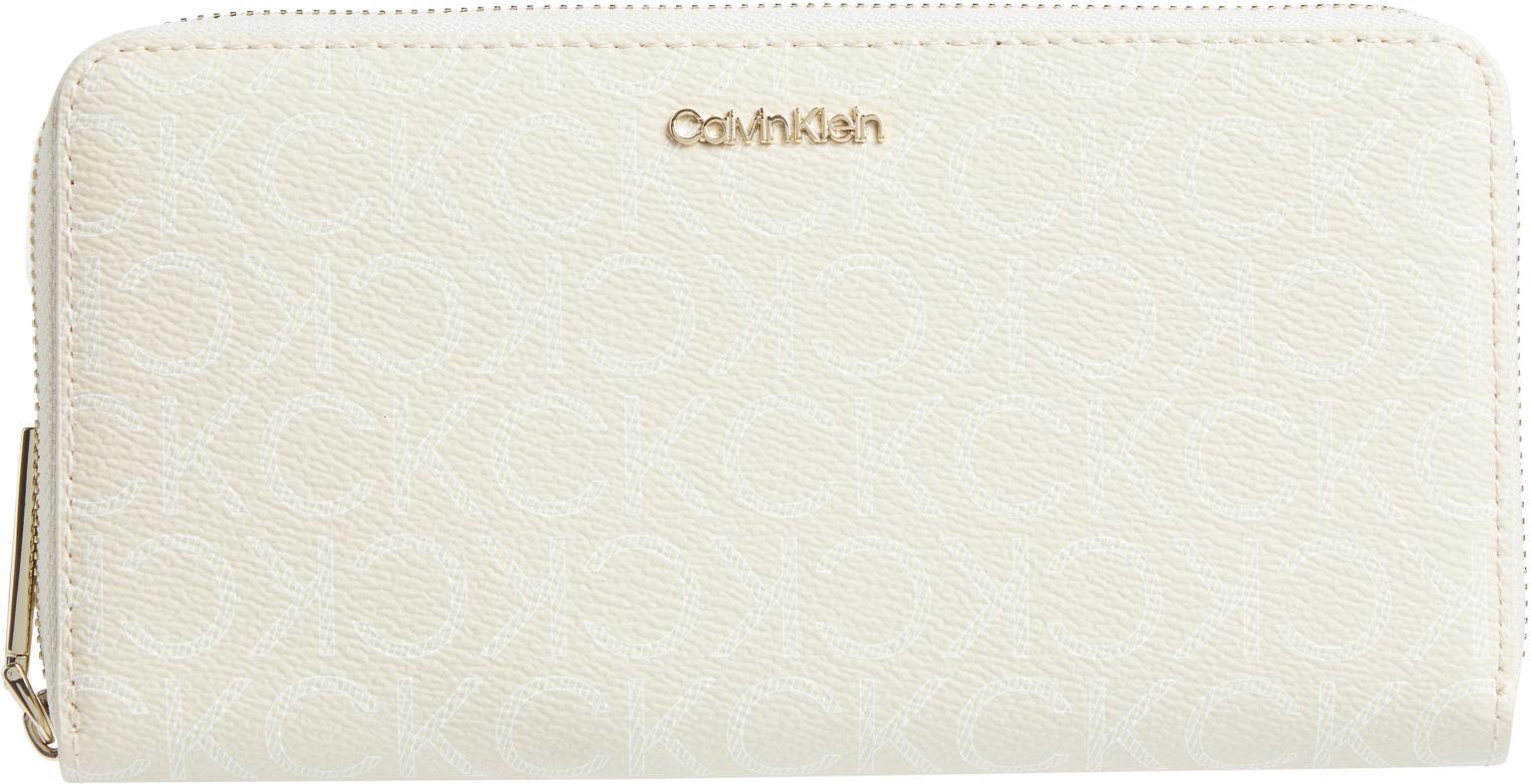 Die Damenbrieftasche der Marke Calvin Klein aus der Serie Z/A Wallet LG Monogram ist aus hochwertigem Kunstleder in der Farbe Sand Mono (beige) gefertigt.