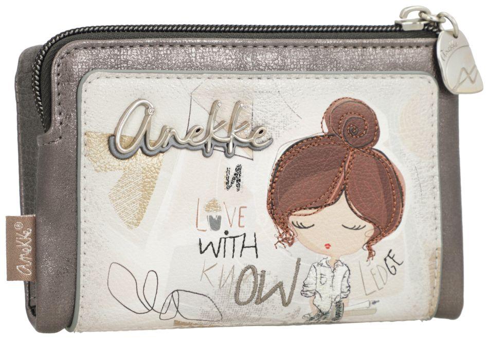 Die Vorderseite des Portemonnaie zeigt deshalb das charakteristische Portrait von Anekke, diesmal in modernem Look mit hochgestecktem Haar. Durch den in zarten Pastellfarben gestalteten Hintergrund drückt das Motiv Stärke und Souveränität aus - ein echtes Vorbild für alle Frauen und Mädchen, die selbstbewusst ihren eigenen Weg gehen. Metallicakzente und feine Stickereien unterstreichen diese Wirkung zusätzlich.