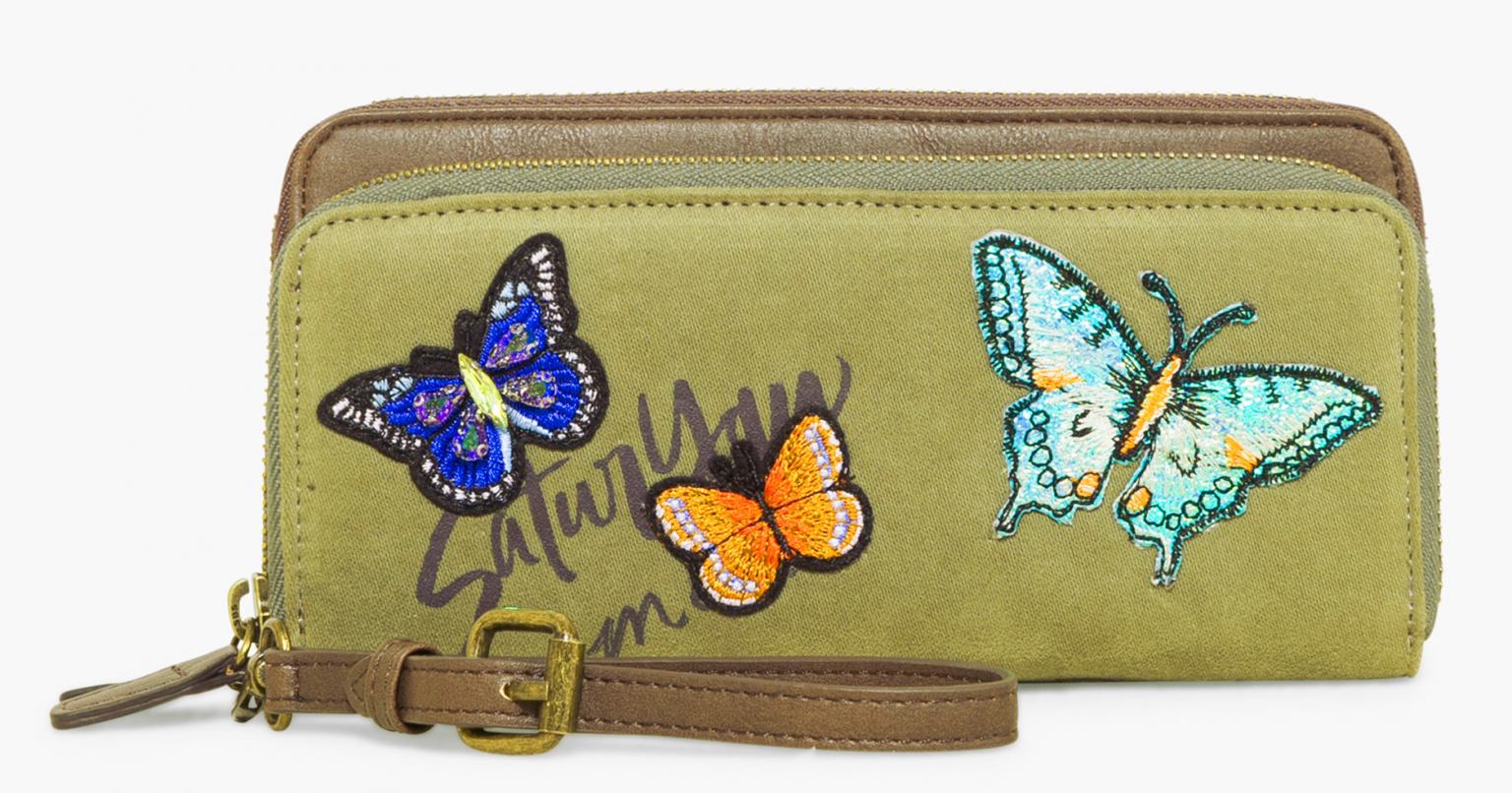 Leicht schimmernde Stickereien, Pailletten und Kunstglassteine verarbeitet in Schmetterlingen verleihen der Geldbbörse einen einzigartigen Zauber.