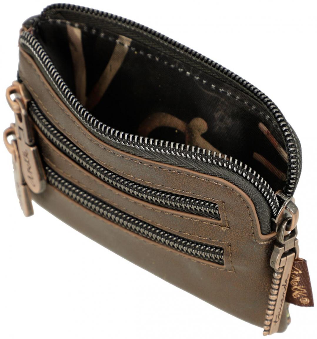 Die Münzbörse ist mittels Reißverschluss zu öffnen und kann auch hervorragend als Schlüsseletui verwendet werden. Im Inneren ist der Geldbeutel mit einem abgestimmten Textilfutter ausgestattet.