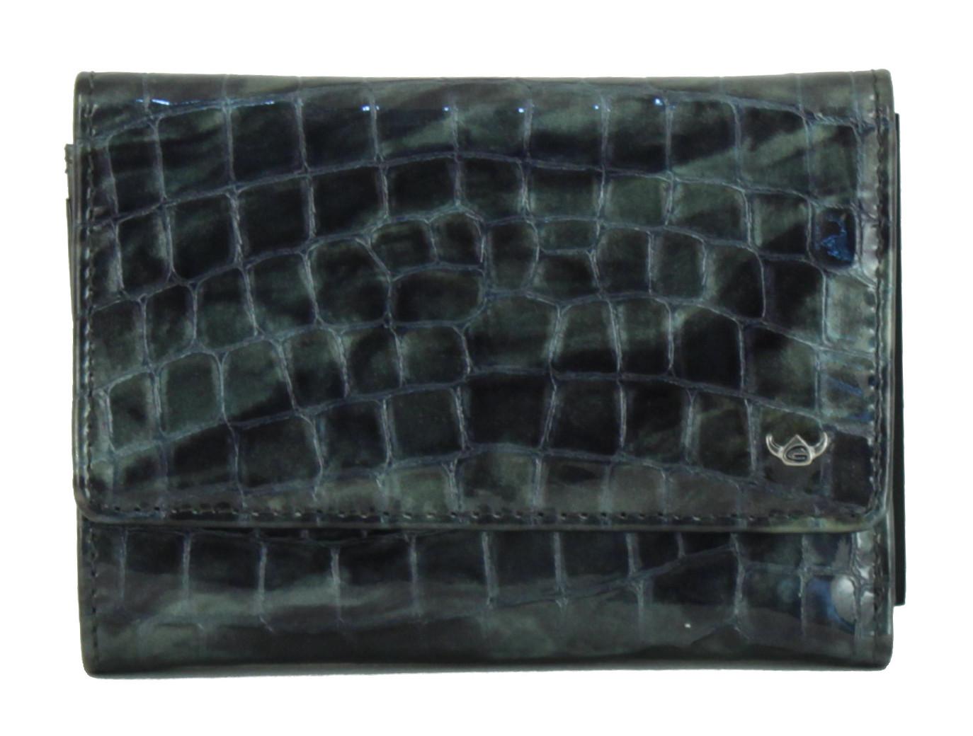 Die Geldtasche der Serie Cayenne von Golden Head ist aus hochwertigem Vollrindleder mit Lack-Krokoprägung in glänzendem Grau gefertigt.
