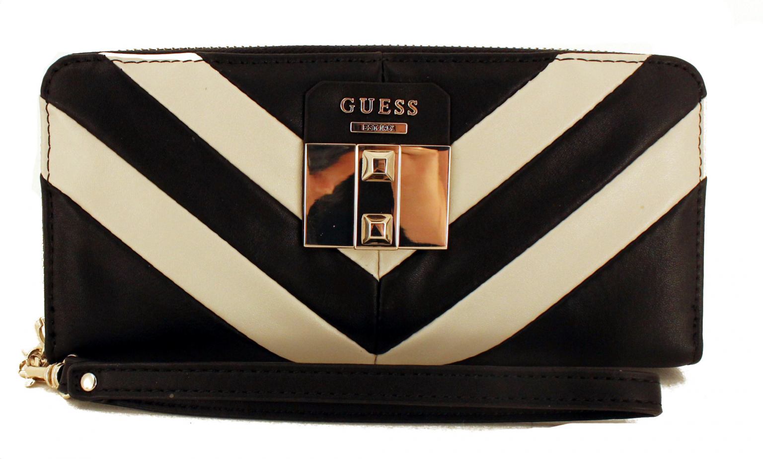 Dieses Portmonee aus der Serie Rebel Roma SLG der Marke Guess ist aus hochwertigem Kunstleder gefertigt.