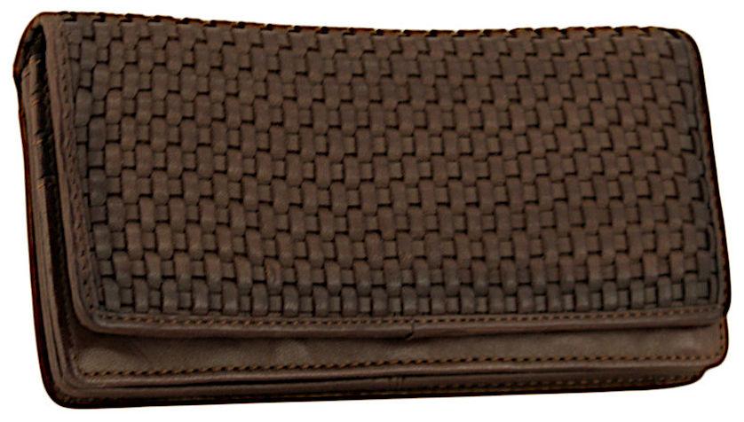 Die Geldbörse Shelly aus der Serie Soft Weaving 2 der Marke Harbour 2nd ist aus hochwertigem Vollrindleder in der Farbe Brown (Dunkelbraun) gefertigt. Die gesamte Longbörse ist per Überschlag und Druckknopf zu schließen. Die gewebte Vorderseite der Brieftasche verleiht dieser einen ganz besonderen Charme.