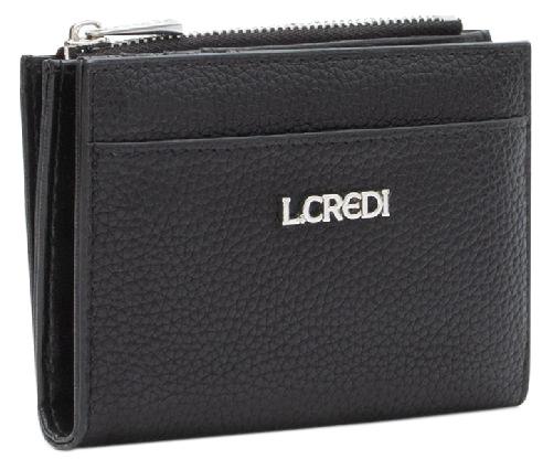 Im modernen Look zeigt sich die klappbare Börse aus der Serie Perla von L.Credi. Das weiche vegane Kunstleder im Farbton Schwarz, ist leicht strukturiert und sorgt so für das beliebte Lederfeeling.