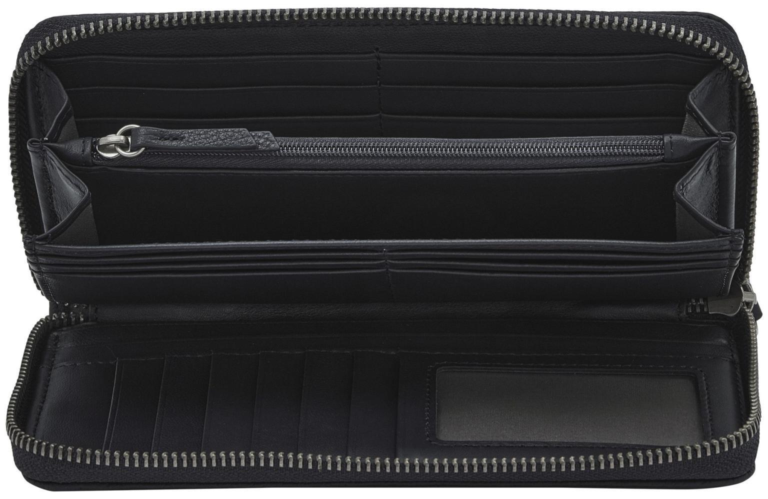 Die Damenbrieftasche wird per Reißverschluss komplett verschlossen.