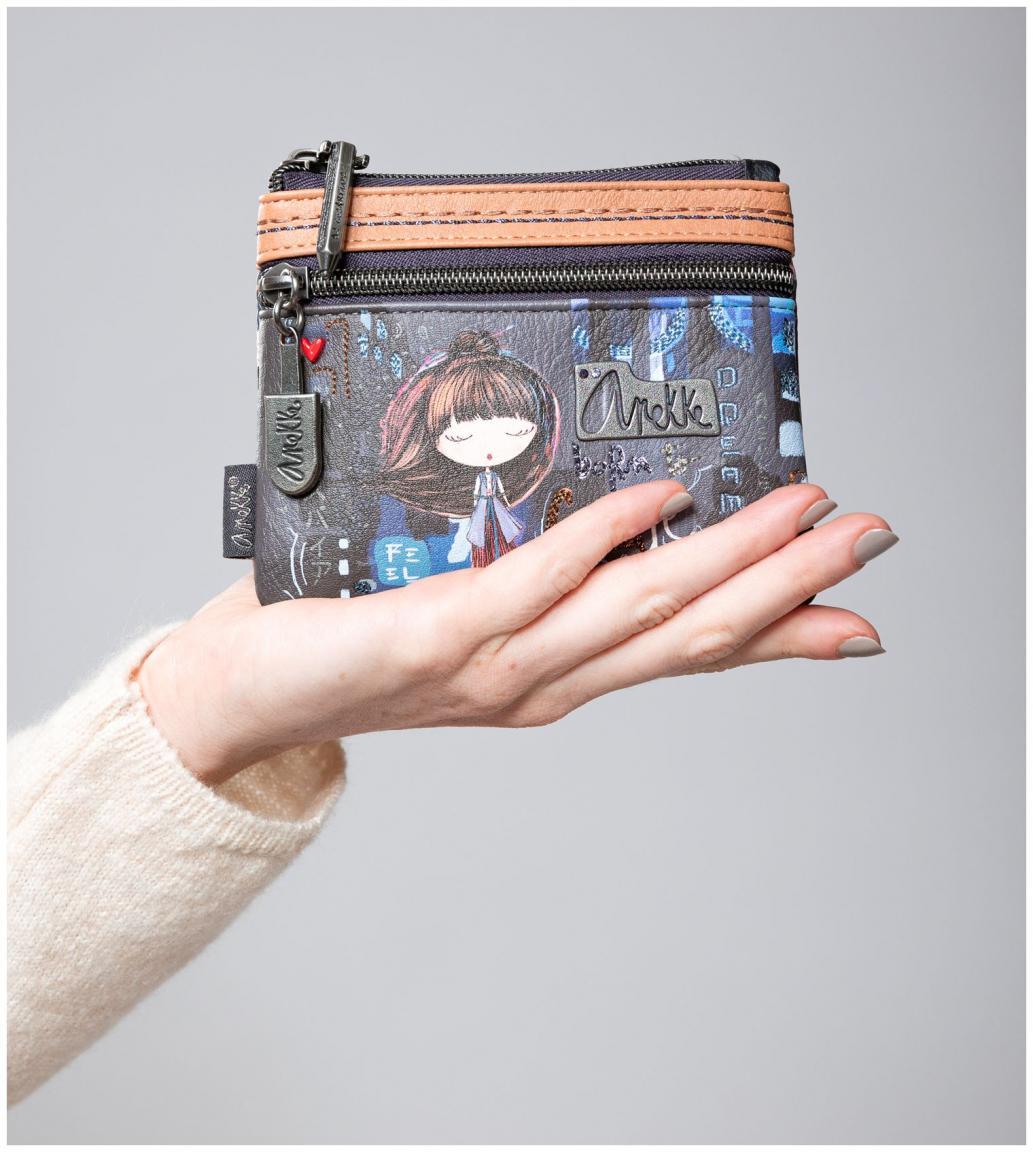 Eine Reise nach Japan unternehmen wir mit dieser Münzbörse aus der Contemporary Kollektion von Anekke. Als Inspiration diente die zeitgenössische Kunst, die sich auch in der Architektur und den Lichtern der japanischen Großstadt zeigt.