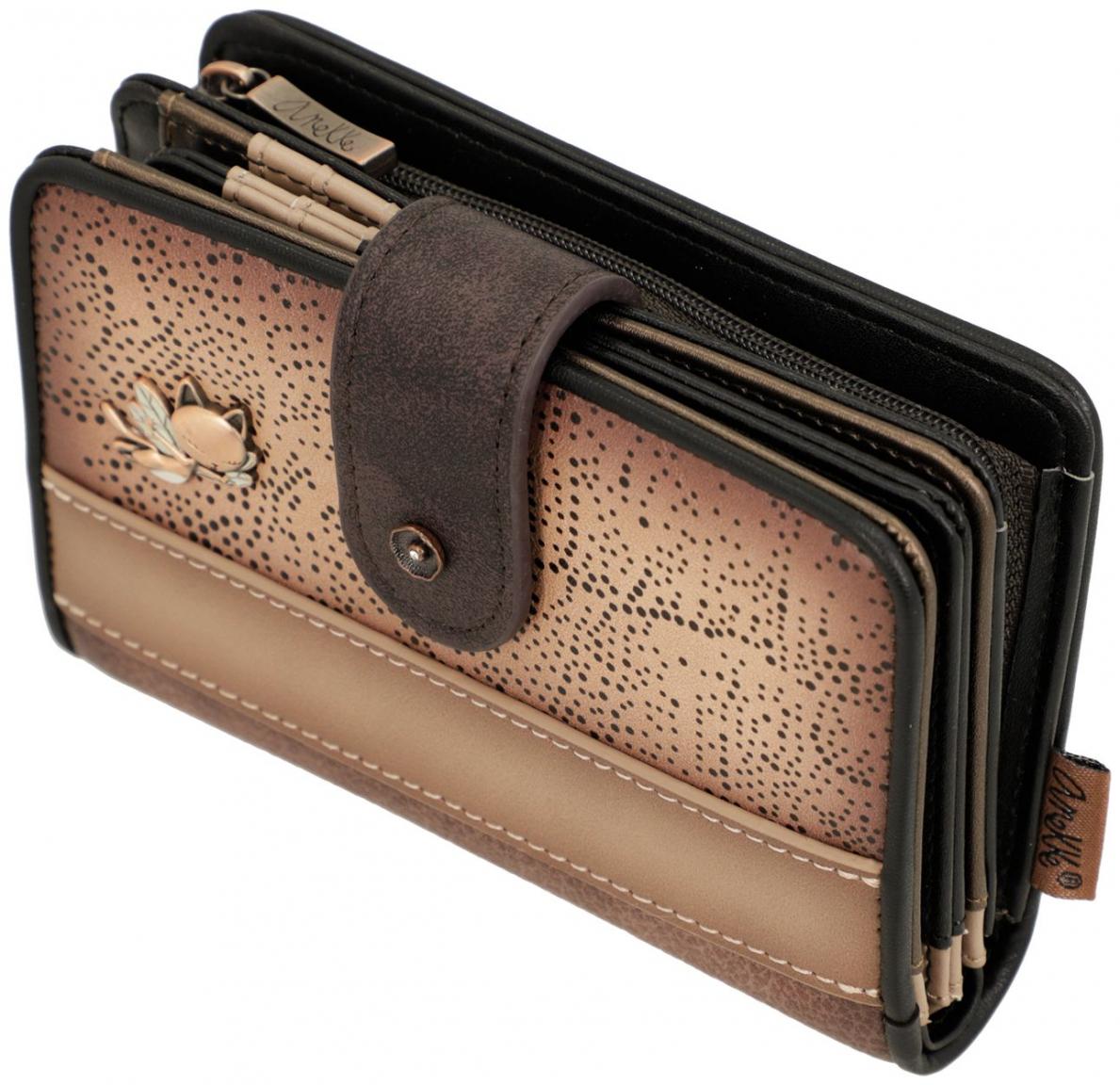 Die Geldbörse wird mittels Zunge und Druckknopf geschlossen.