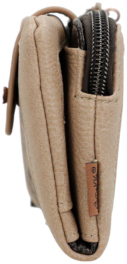 Das Portmonee wird mittels Lasche und Druckknopf geschlossen.