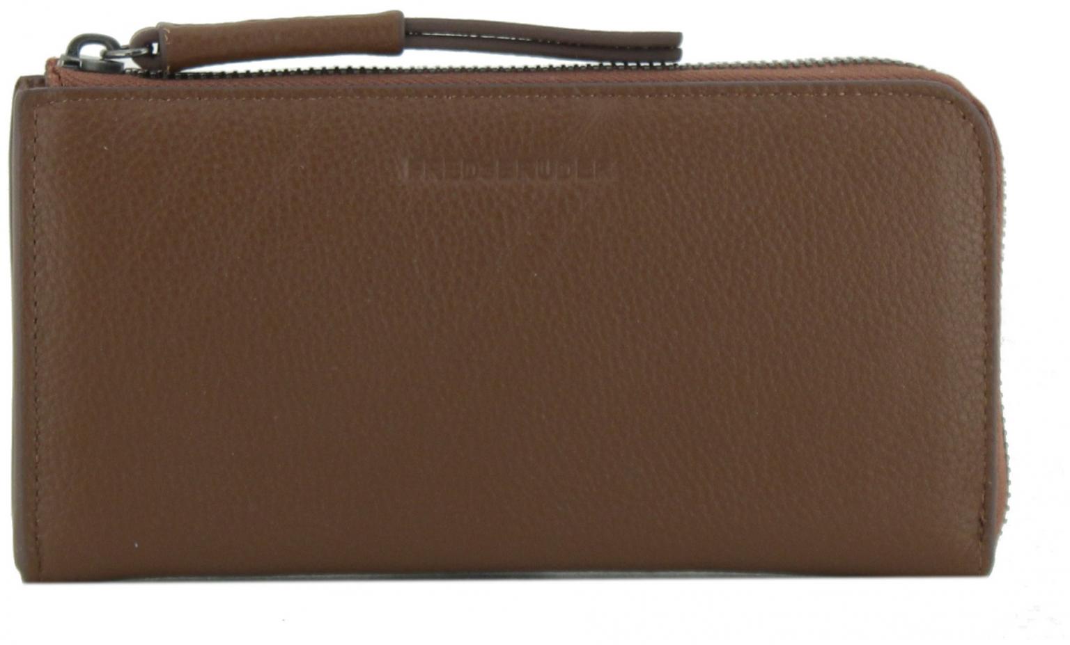 In schlichtem und doch ungewöhnlichem Look präsentiert sich die Zipbörse Nea Big Wallet von FREDsBRUDER. Gefertigt ist das Portemonnaie aus genarbtem Leder in klassischem Schwarz (Black).