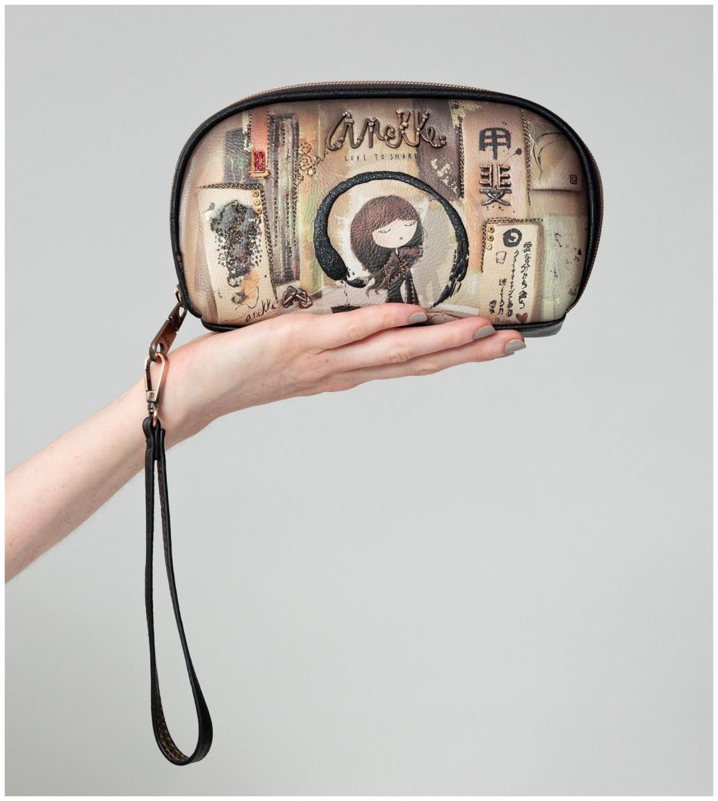 Wieder einmal ist es eine starke Frau, die Anekke zu einer Kollektion inspirierte. Diese Brieftasche aus der Shoen Kollektion ist demnach als Hommage an die Künstlerin Uemura Shoen zu sehen. Der cahrakteristische Print an der Vorderseite zeigt deshalb Anekke als emotionale Künstlerin in ihrem Atelier. Glitzernde Stickereien und Metallapplikationen setzen das Motiv perfekt in Szene. Auch der künstlerisch gestaltete Markenschriftzug passt sich dem Design des Wallets an.