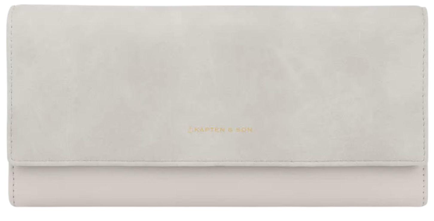 Die Triomphe Longbörse von Kapten & Sin in der eleganten Farbe Oyster, einem warmen, hellen Grau-Taupe-Ton, verbindet stilvolles Design mit praktischer Funktionalltät. Dank ihrer schmalen, länglichen Form ist sie besonders handlich und zeitlos schick.