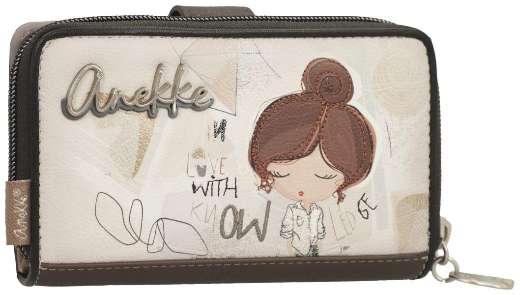 Die Vorderseite der Geldbörse aus hellem Kunstleder zeigt deshalb den charakteristischen Print mit einer selbstbewussten und starken Anekke in modernem Look, das Haar zum Dutt hochgesteckt - ein Vorbild für alle Mädchen und Frauen, die ihr Ziel klar vor Augen haben und 'verliebt in Wissen' sind. Denn Wissen ist Macht!