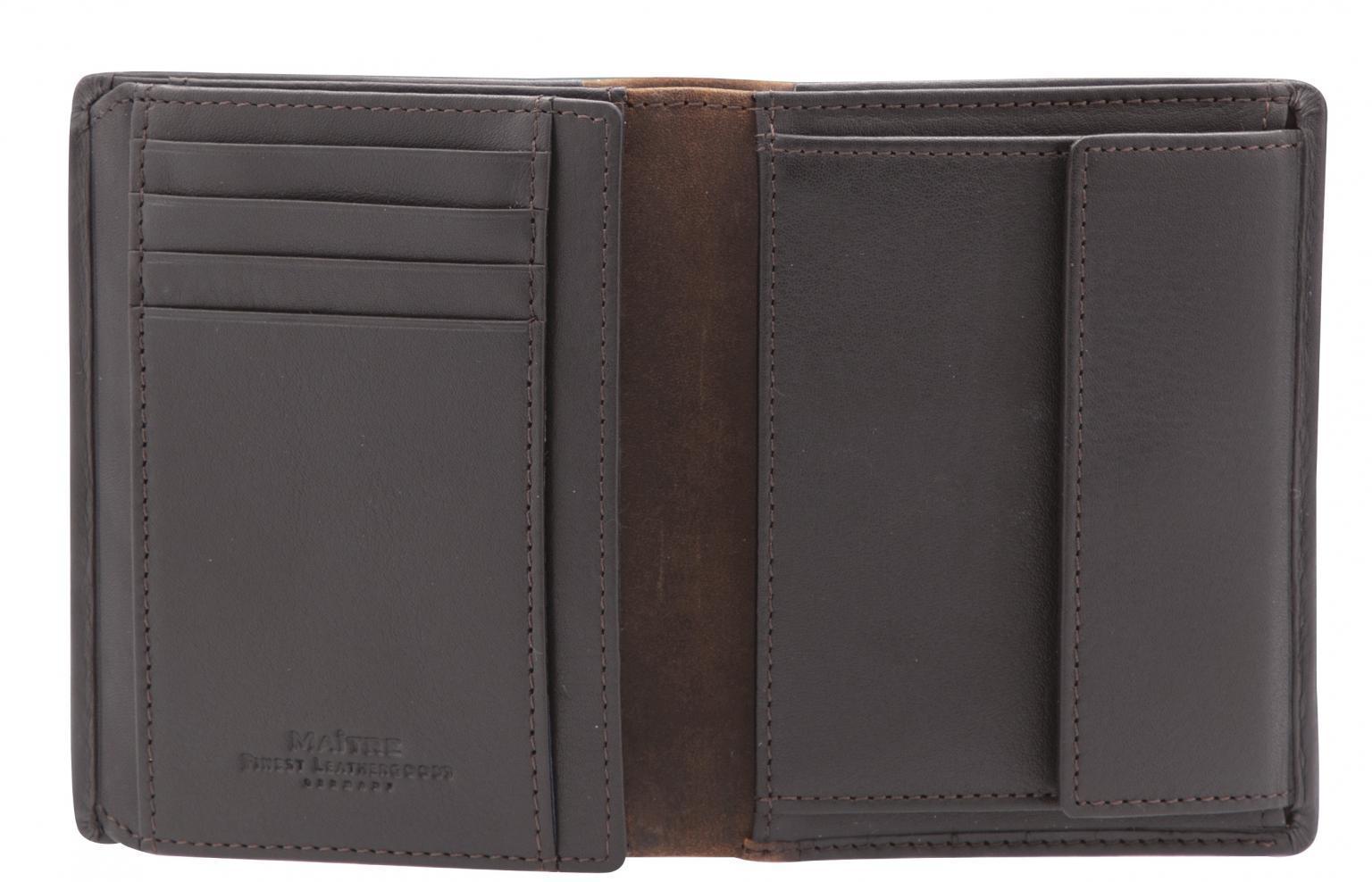 Die Herrengeldtasche Hainer BillFold V8 aus der Serie bundenbach der Marke Maitre ist aus hochwertigem Leder gefertigt. Die Kombination aus schwarzem und braunem Leder verleiht der Börse eine besondere Ausstrahlung.
