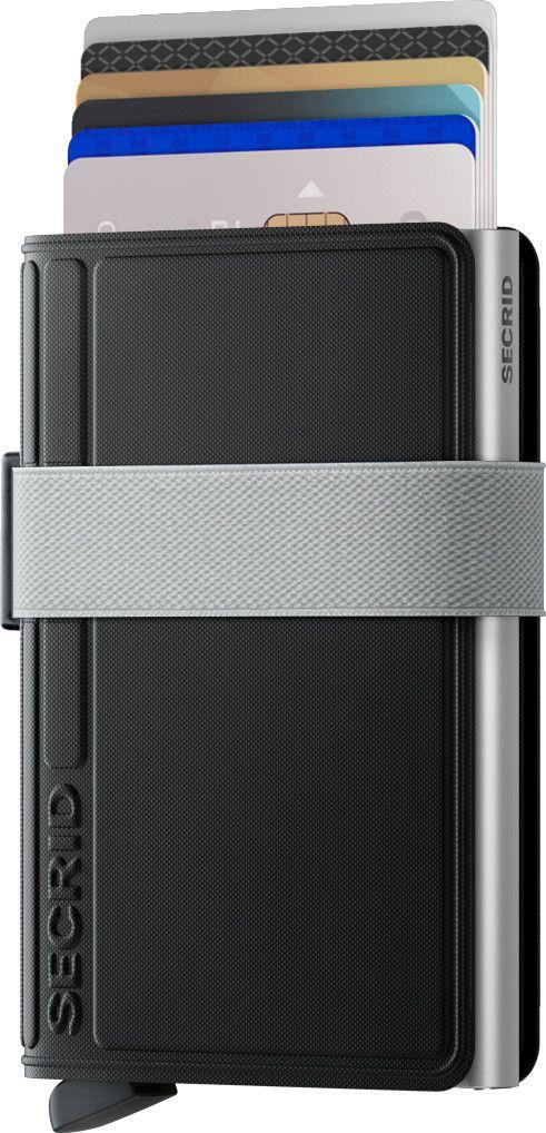 Dieses Secrid Bandwallet besteht aus dem Cardprotector aus Aluminium (Matt Silberfarben) für 4-6 Karten, dem schwarzen Etui und aus dem Moneyband, in der Farbe hellgrau, welches alles zusammenhält. Es können Geldscheine in dem Etui Umschlag sowie mit dem Gummiband außen befestigt werden. Im Umschlag befinden sich noch zwei weitere Kartensteckfächer und ein aufklappbares Geldscheinfach. Das Moneyband kann auch problemlos abgenommen werden.