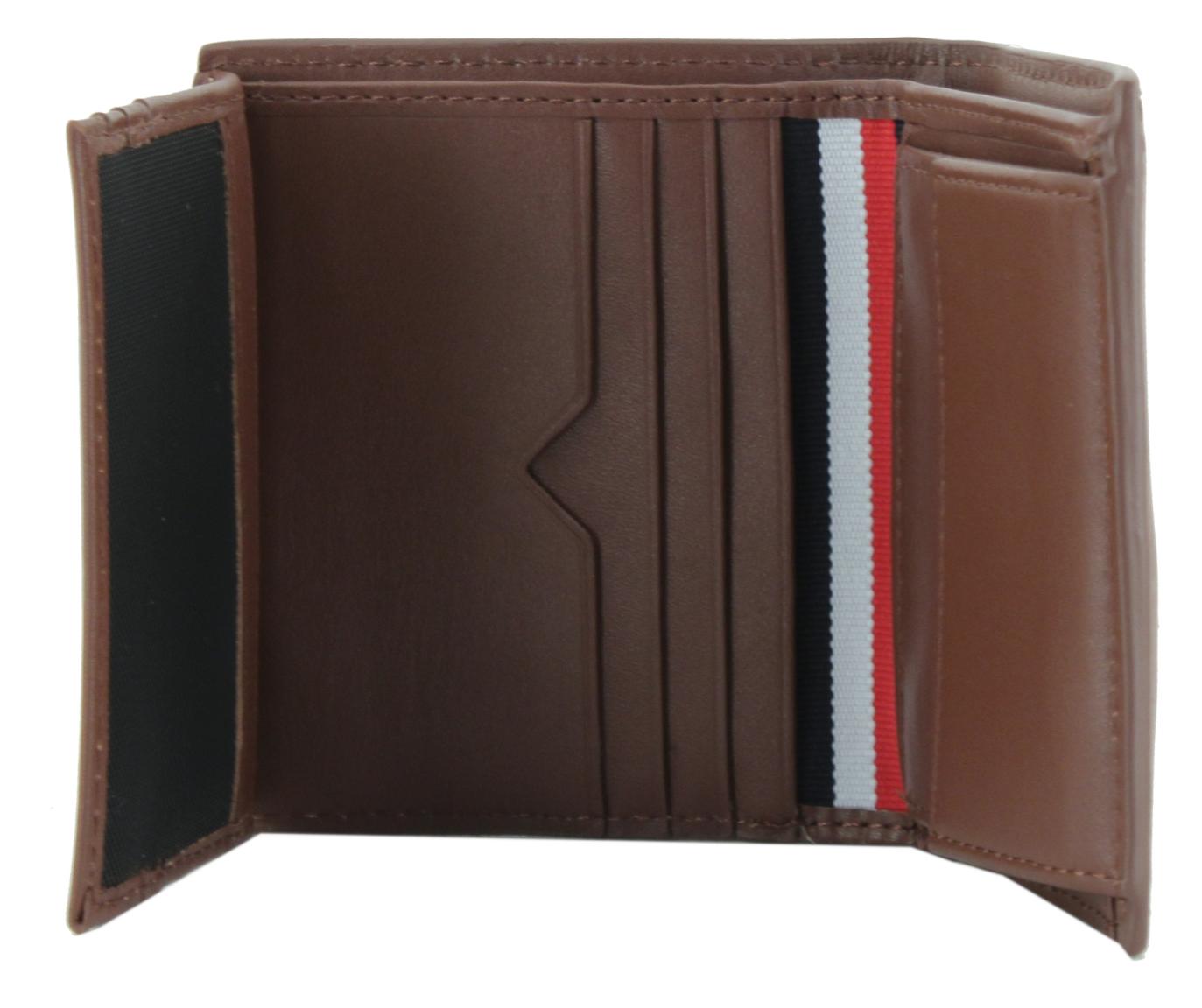 In ganz cleanem Look zeigt sich die kompakte Herrenbörse Leather Trifold aus der Serie TH Modern von Tommy Hilfiger. Glattes Leder im Farbton Tan (braun) sorgt für das universelle Design, der silberne Markenschriftzug an der Vorderseite der Geldtasche für das besondere Design.