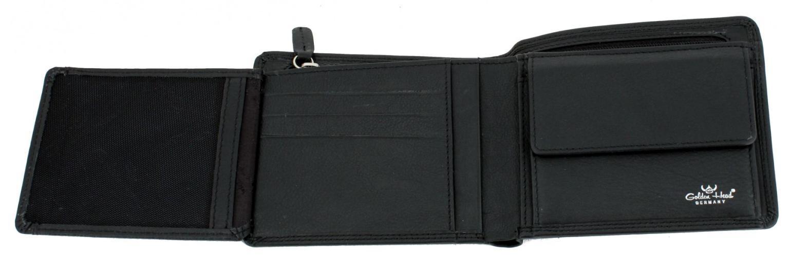 Das Trifold Leather Wallet für Herren aus der Serie Polo der Marke Golden Head ist aus ökologisch gegerbten Rind-Nappaleder im klassischem Schwarz (Black) gefertigt. Das weiche Leder mit robustem Doppelsteppnähten und abgerundeten Kanten sorgt für eine angenehme Handhabung und bringt eine erstklassige Qualität mit.