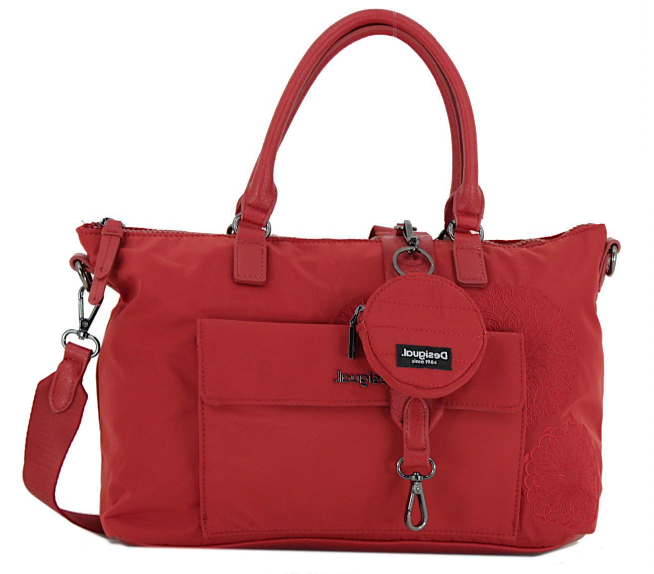Ein richtiges Must Have ist die Handtasche Padua PC aus der Serie Mandarala von Desigual. Die Henkeltasche aus rotem Nylongewebe besticht durch die zarte Mandala-Stickerei an der Vorderseite. Die Kombination mit rotem Kunstleder mit genarbter Oberfläche macht die Handtasche zu einem echten Blickfang.