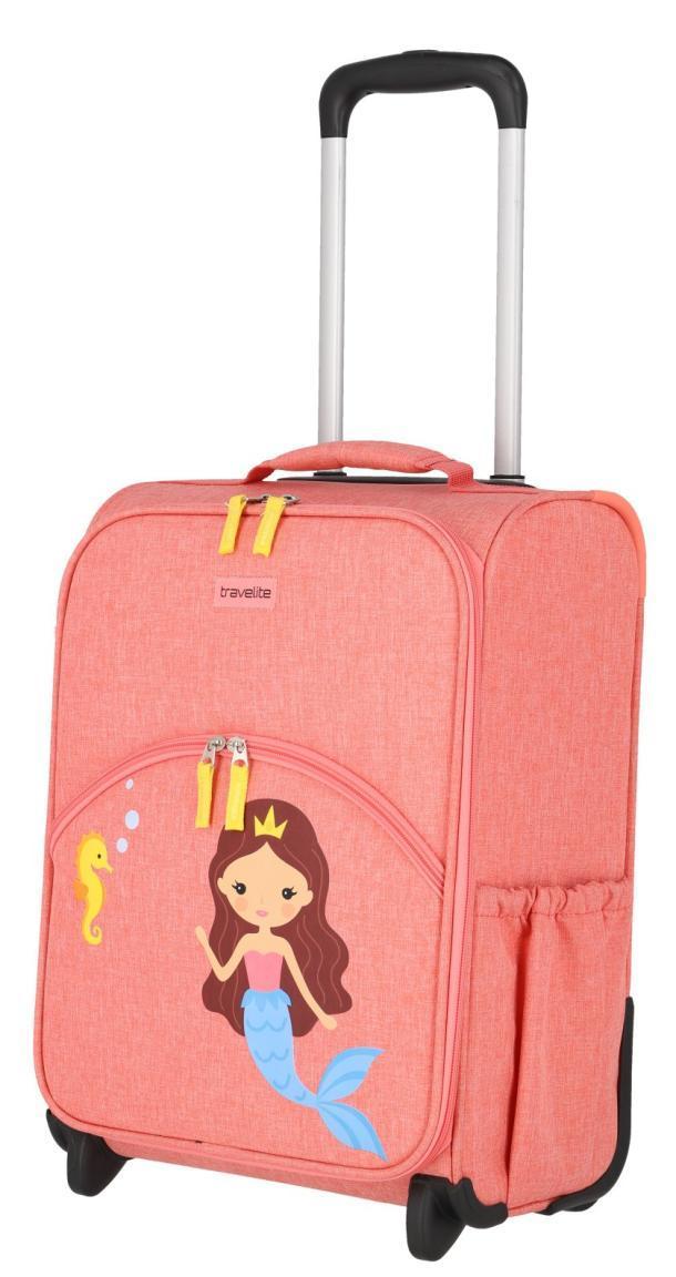 Mit diesem Mädchenkoffer aus der Serie Youngster von Travelite können auch die Jüngsten unter uns stilvoll reisen! Der kleine 2-Rad-Kinderkoffer ist auch hochwertigem Nylongewebe in Rosé gefertigt, die Vorderseite ziert ein auffälliger Meerjungfrauen-Print. Die Innenseite des Kindertrolleys ist in kräftigem Gelb gehalten.