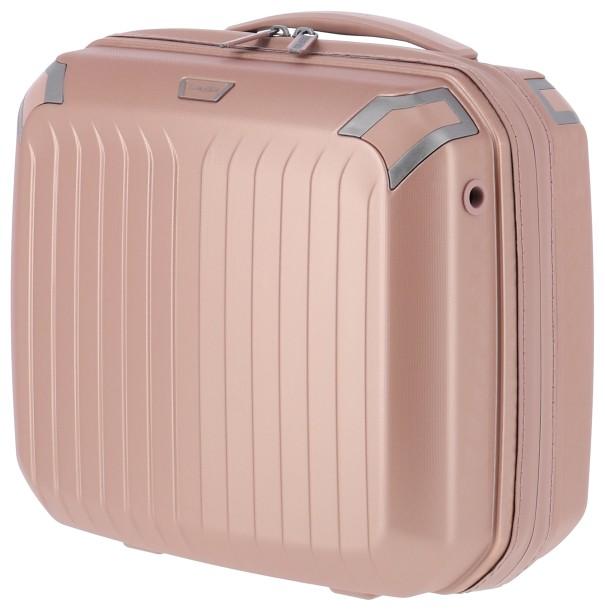 Stilsicher auf Reisen geht es mit dem Beautycase aus der Serie Elvaa von Travelite. Gefertigt ist der Kosmetikkoffer aus besonders widerstandsfähigem Polypropylen in dezentem Rosegold (altrosa). Die strukturierte Oberfläche macht den kleinen Koffer besonders kratzerunempfindlich.