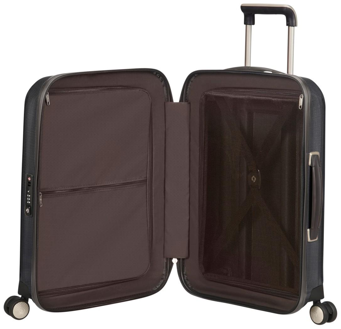 Ab in den wohlverdienten Urlaub! Mit diesem Bordtrolley Spinner S 55cm der Serie Lite-Cube von Samsonite hat man immer den idealen Begleiter. Der Rollenkoffer ist aus hochwertigem schlagfestem Curv Schalenmaterial m Farbton Dark Olive (sehr dunkles Olivgrün) gefertigt. Curv zeichnet sich durch sehr niedriges Gewicht bei gleichzeitig extremer Bruchsicherheit aus. Außerdem ist die Oberfläche sehr kratzunempfindlich.