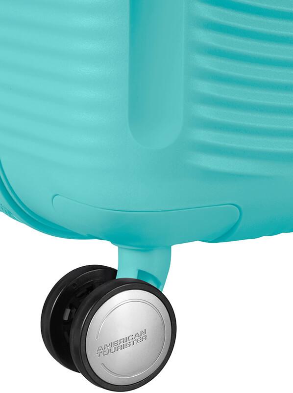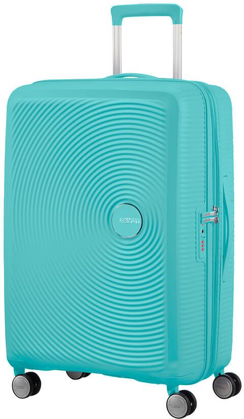 Der perfekte Begleiter in den wohlverdienten Urlaub ist der Hartschalentrolley Spinner M 67cm aus der Serie Soundbox von American Tourister. Der Rollenkoffer ist aus schlagfestem Polypropylen Schalenmaterial gefertigt. Die leuchtende Farbe Pool Side Blue (helles Türkisblau) macht den Reisekoffer zum echten Blickfang auf jedem Gepäckband. Größe und Einteilung machen den Trolley ideal für Reisen aller Art.