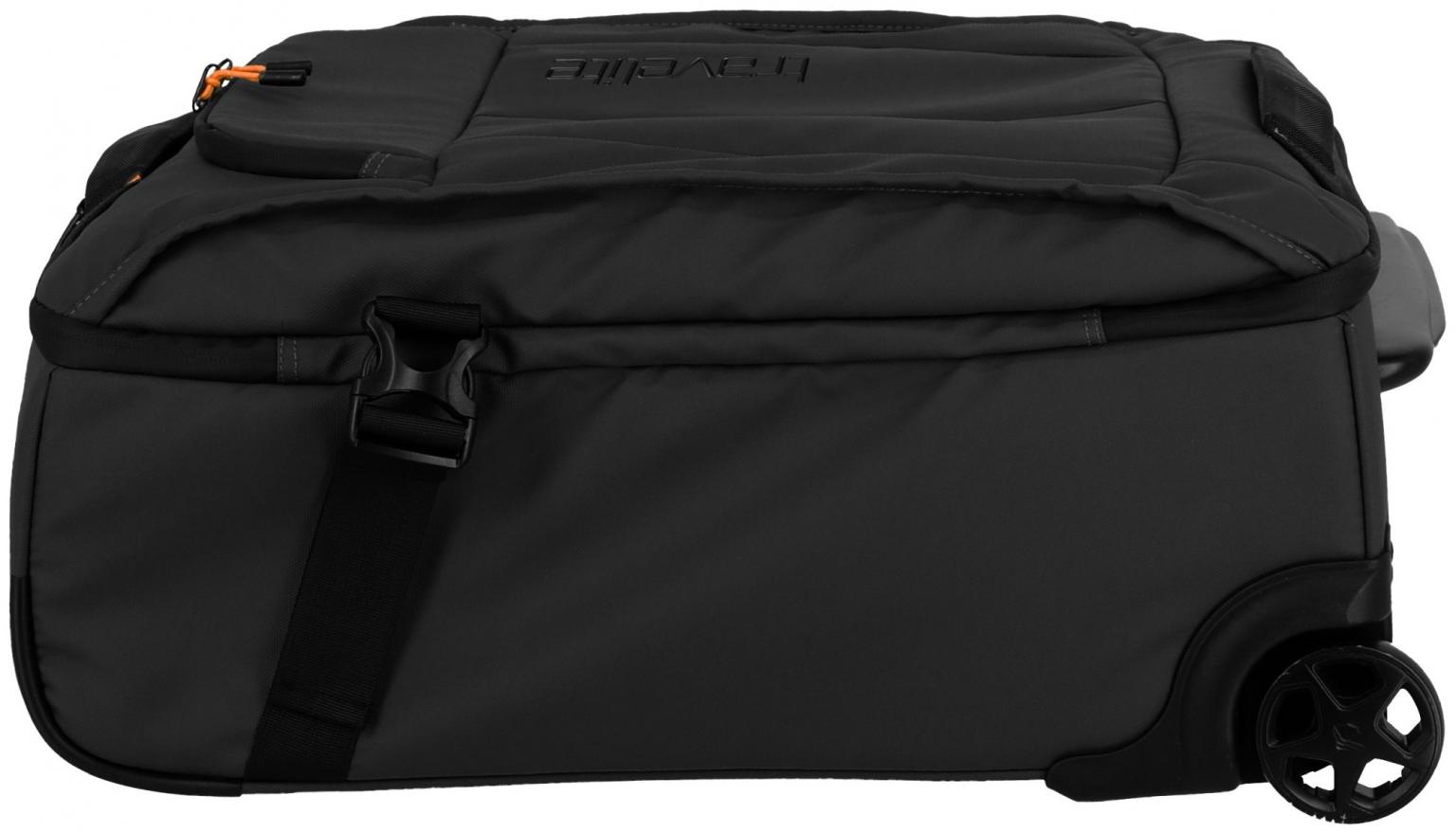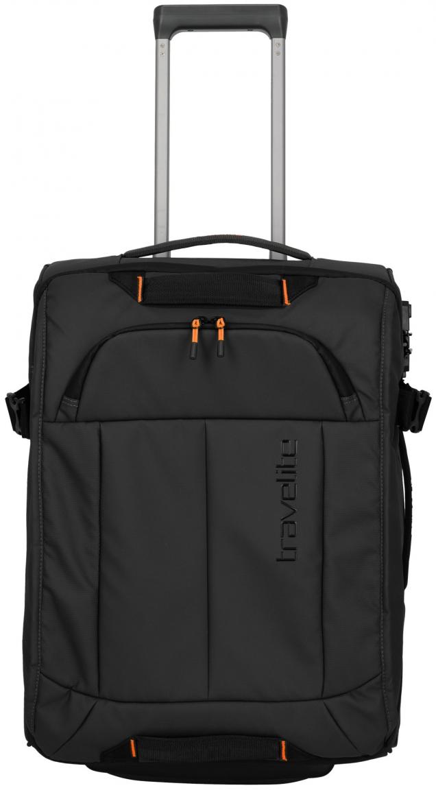 Sportlich und modern präsentiert sich die Handgepäck Rollenreisetasche S 55cm aus der Serie Briize von Travelite. Gefertigt ist der Kabinentrolley aus beschichtetem Gewebe im Farbdesign Black. Der schwarze Koffer wird durch die orangen Details zum echten Eyecatcher.