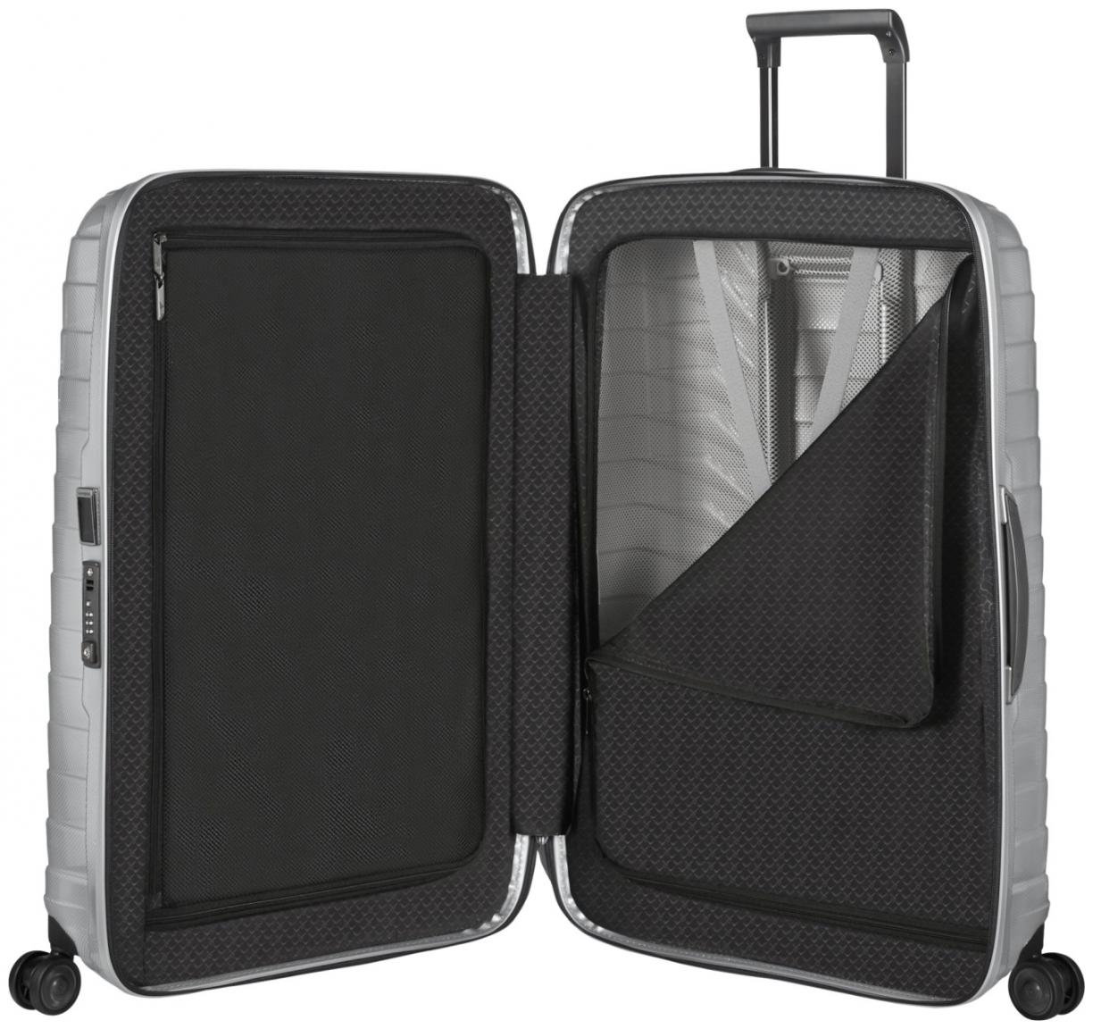 Ein absolutes Leichtgewicht ist der Rollenkoffer Spinner M 69cm aus der Serie Proxis von Samsonite. Gefertigt ist der Flugkoffer aus innovativem Roxkin™-Material im Farbton Silber.Dieses besondere Material wurde exklusiv von Samsonite entwickelt und besteht aus 28 Lagen Polypropylen Schalenmaterial. Dadurch ist der Trolley besonders stoßfest und robust, gleichzeitig aber auch äußerst flexibel und leicht.