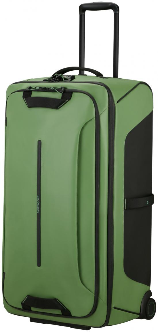 Der perfekte Flugbegleiter für ängere Reisen aller Art ist diese Reisetasche Duffle/WH 79cm aus der Serie Ecodiver von Samsonite. Der Trolley ist aus speziellem Recyclex® Gewebe in der Farbe Stone Green (grün) gefertigt. Dieses besondere Material wird aus wiederverwerteten und aufbereiteten Kunststoffen gewonnen. Dieser Reiserucksack sieht demnach nicht nur stylisch aus, sondern schon dazu auch noch Umwelt und natürliche Ressourcen.