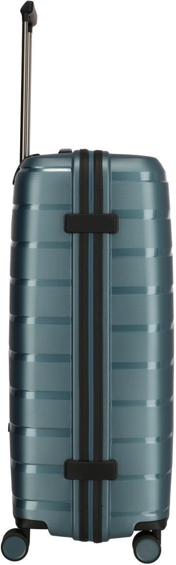 Der 4-Rad Reisetrolley L 77cm aus der Serie Air Base von Travelite ist aus besonders widerstandsfähigem Polypropylen in der Farbe Ice Blue (blau metallic) gefertigt. Die Oberflächenstruktur macht den 4-Rad-Trolley auf unempfindlicher bei Kratzern.