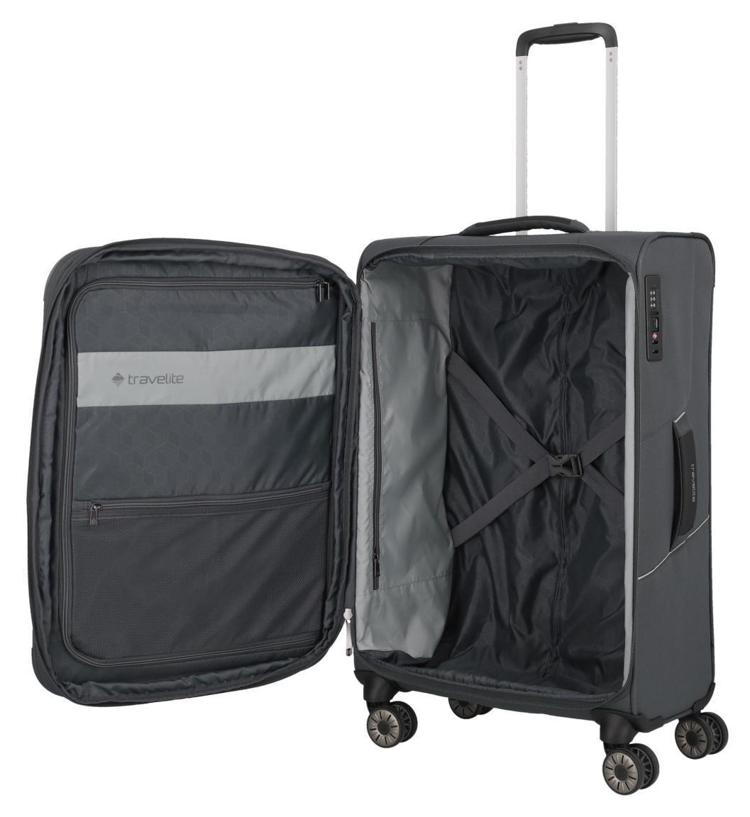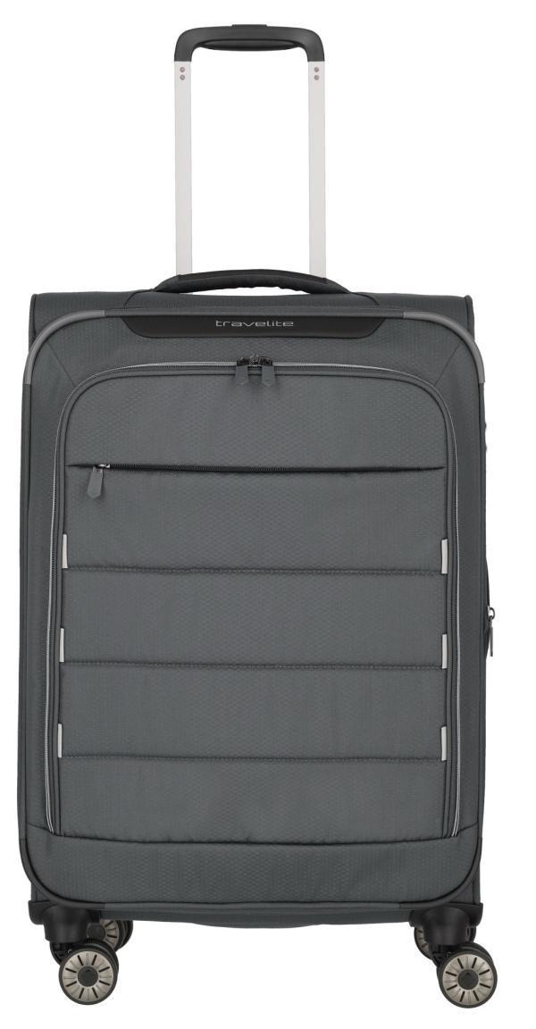 Der Rollenkoffer M 67cm aus der Serie Skaii von Travelite ist aus hochwertigem Gewebe aus recyceltem Material in der Farbe Gipfelgrau (anthrazit) gefertigt. Durch sein geringes Gewicht ist der Trolley ein idealer Begleiter auf Reisen aller Art.