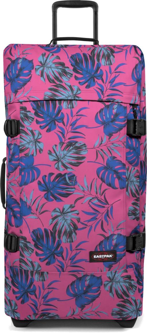 Der große ReisetaschentrolleyTranverz L von Eastpak verbindet die Flexibilität von Reisetaschen mit der Übersicht von Koffern und Trolleys und ist damit der ideale Begleiter für längere Reisen. Im ansprechenden Farbton Monstera Pink Brize, ein sattes Pink mit Musterung aus blauen Blättern wird dieser großzügige Koffer zum echten Eyecatcher.