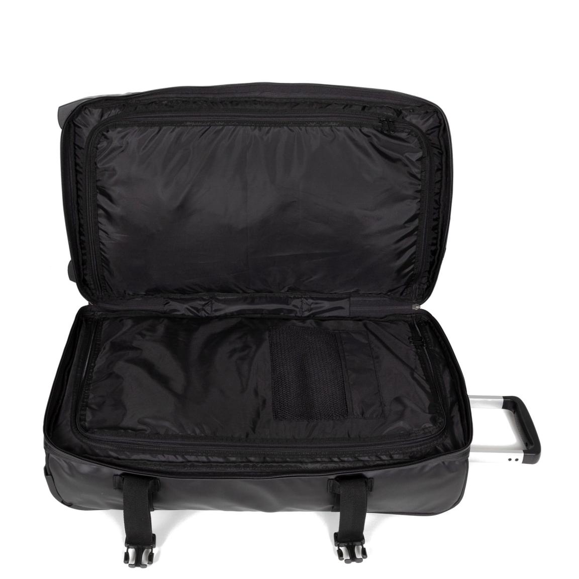 Die 2-Rollen System Reisetasche Transit'r L der Marke Eastpak ist ein idealer Reisebegleiter mit großem Platzangebot. Das dankbare Nylongewebe im zeitlosen Schwarz (Black) mit glanzvollem Finish, sieht nicht nur edel aus sondern ist auch noch wasserabweisend.