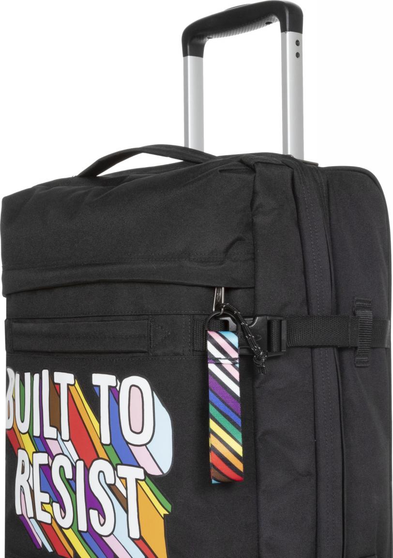 Der Handgepäckstrolley Transit'r S der Marke Eastpak ist ein idealer Reisebegleiter für Wochenendtrips aber auch Geschäftsreisen. Gefertigt aus recycletem Material, zeigt sich diese Reisetasche sehr umweltbewusst. Mit dem Pride Edition Aufdruck auf schwarzem Hintergrund, und dem bunten Innenleben, ist dieser Trolley ein echter Hingucker.