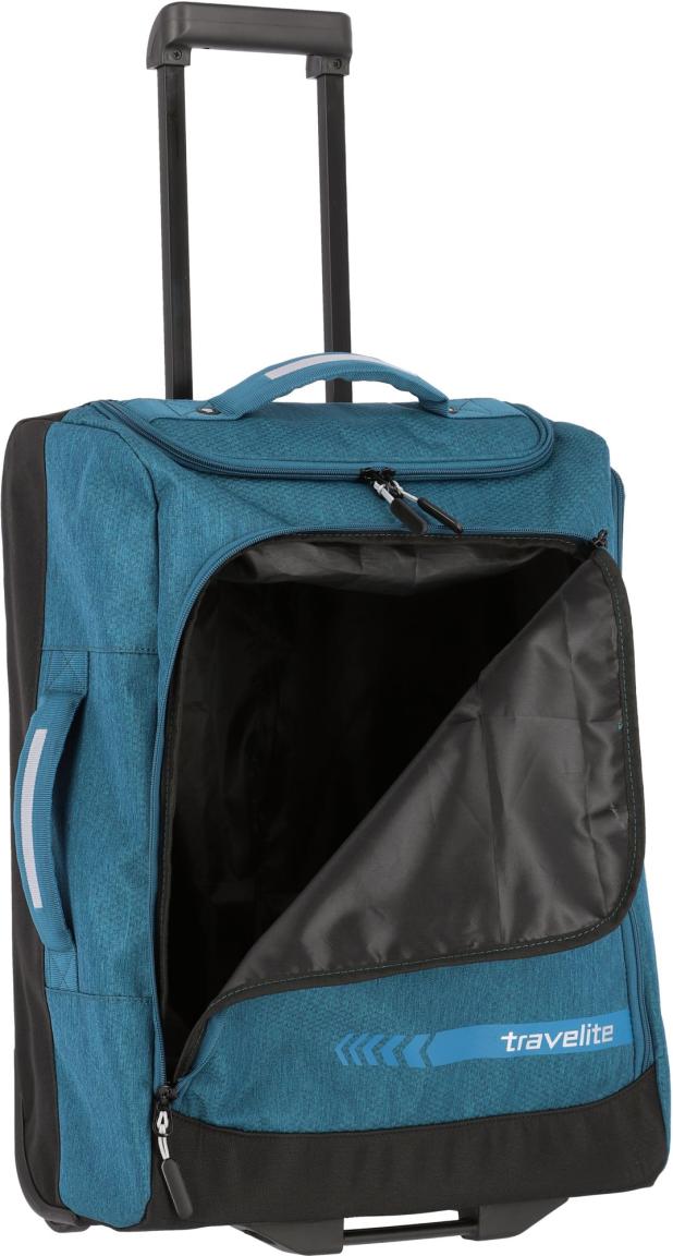 Keine Lust auf langes Suchen des eigenen Koffers auf dem Gepäckband? Dann ist der Rollenreisetasche S 55cm aus der SerieKick Off von Travelite genau die richtige Wahl. Strapazierfähiges Gewebe in der Farbe Petrol und das sportliche Design machen den Taschentrolley zum echten Blickfang.