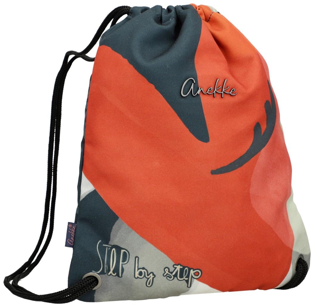Dieser Jugendrucksack im Stil eines Turnbeutels ist aus dichtem Nylongewebe gefertigt. An der Vorderseite des Backpacks dominiert ein warmes Orangerot.