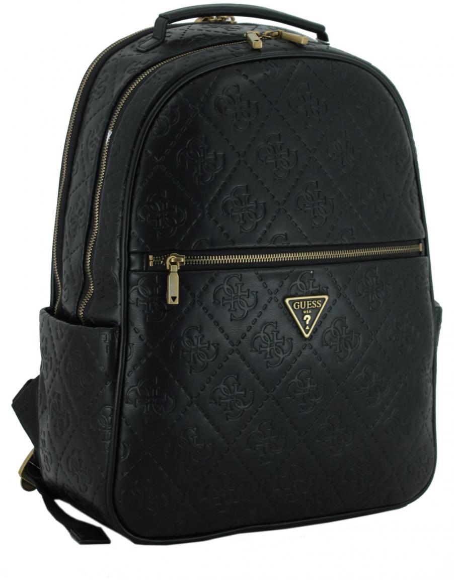 Nicht nur praktisch sondern auch stylisch ist der Bürorucksack Tech Backpack aus der Serie Power Play von Guess. Geschmeidiges Kunstleder in klassischem Schwarz (Black) zeichnet den Damenrucksack aus. Die Alloverprägung des 4G-Logos verleiht dem Laptoprucksack eine besondere Ausstrahlung. Ein Markenemblem in Dreiecksform ziert die Vorderseite des Backpacks.