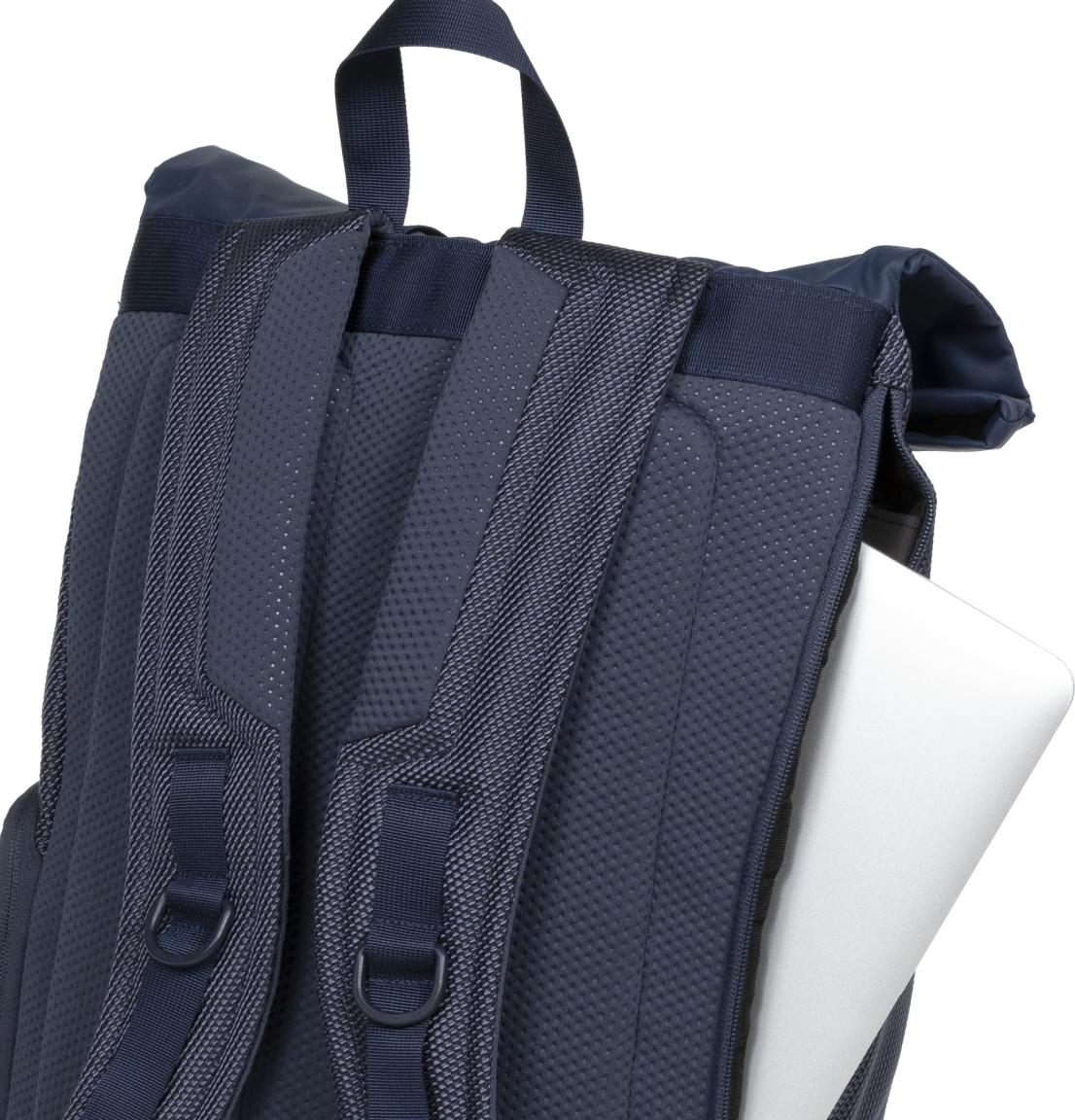 Der Herren Backpack Tecum Roll von Eastpak in der Farbe CNNCT Marine (Blau) zeigt sich sportlich und attraktiv. Entworfen für Stadtmenschen, die sich nach einem trendigen Accessoire sehnen, das sowohl für die Arbeit als auch für Freizeitaktivitäten geeignet ist. Der Rolltop Rucksack ist praktisch und bietet Platz für einen 14 Zoll Laptop und ein 9,7 Zoll Tablet. Mehrere Fächer sorgen für Ordnung.