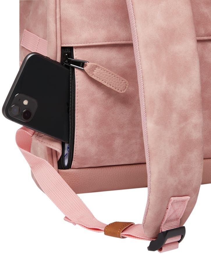 Gefertigt ist der feminine Rucksack im Design Male aus geschmeidigem Kunstleder in einem schönen altrosa Farbton. Das pflegeleichte Material lässt sich leicht Reinigern und liegt gut in der Hand.