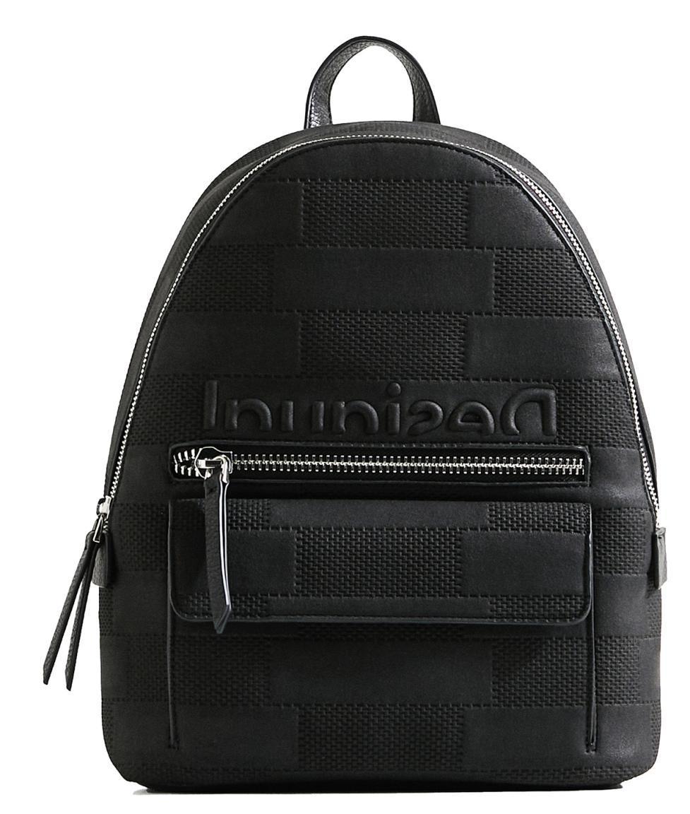 Ein absolutes Fashion-Must-Have ist dieser stylische Rucksack Mombasa Mini aus der Serie Tristras Negro von Desigual. Der Backpack aus schwarzem Kunstleder ist durch die verschiedenen Oberflächenstrukturen im Patchworklook designt. Größe und Einteilung machen den Rucksack zum perfekten Alltagsbegleiter. Durch das einerseits schlichte und dennoch auffällige Design passt der Cityrucksack zu nahezu jedem Look.
