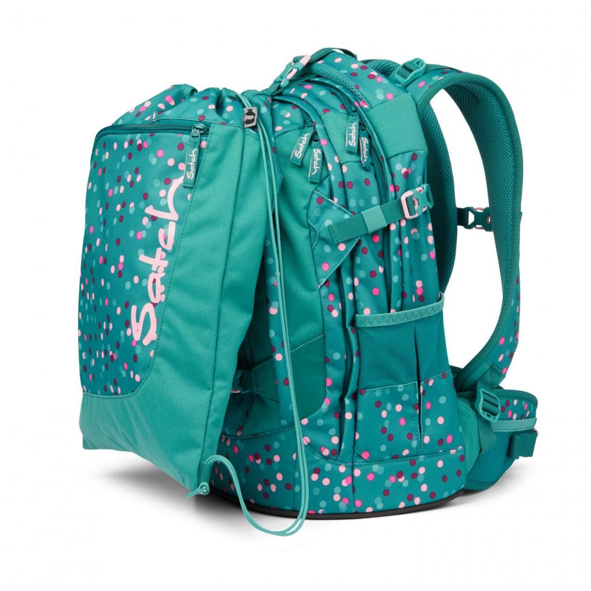 Das Hauptfach des Sportsackerls ist per Tunnelzug zu schließen. An der äußeren Vorderseite des Turnbeutels befindet sich noch ein Reißverschlussfach. Mittels Klickverschluss kann der Turnbeutel an der Satch Schultasche befestigt werden.