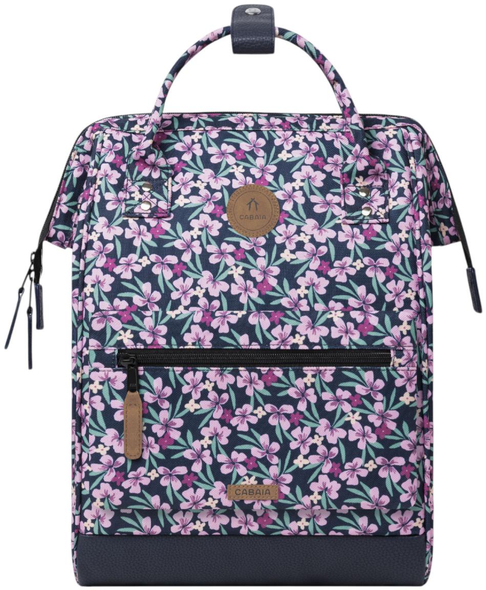 Mittelgroßer Freizeitrucksack Adventurer Medium von Cabaia mit durchdachter Einteilung. Feminines Design Cagliari in Lila mit dunkelblauen Akzenten. Geräumiges Hauptfach und auswechselbare Fronttaschen, ideal für Reisen, Wanderungen oder Stadtbummel.