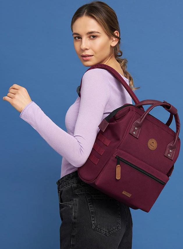 Gefertigt ist der Minirucksack im Design Nice aus robustem und nachhaltigem Gewebe in einem kräftigen Purple (weinrot). Details aus veganem Kunstleder im abgestimmten Farbton peppen den Look des Minirucksacks auf.